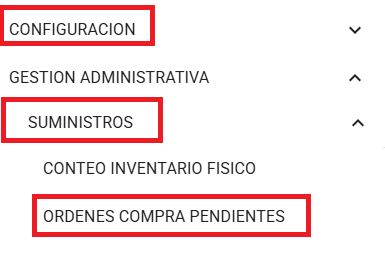 Gestión Administrativa > Suministros > Órdenes Compra Pendientes