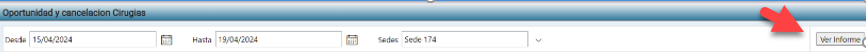El proceso de ajuste en el informe de "Oportunidad y Cancelación de Cirugías" en la plataforma iMedical, proporciona un resumen detallado de los pacientes programados para cirugía dentro de un rango de fechas determinado, así como para registrar y gestionar las oportunidades y cancelaciones asociadas.