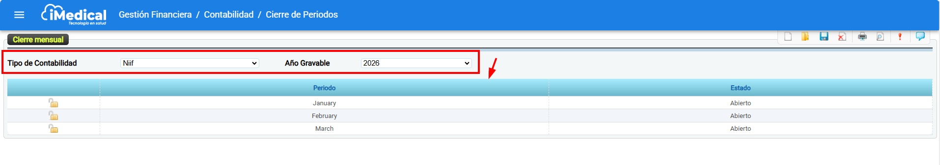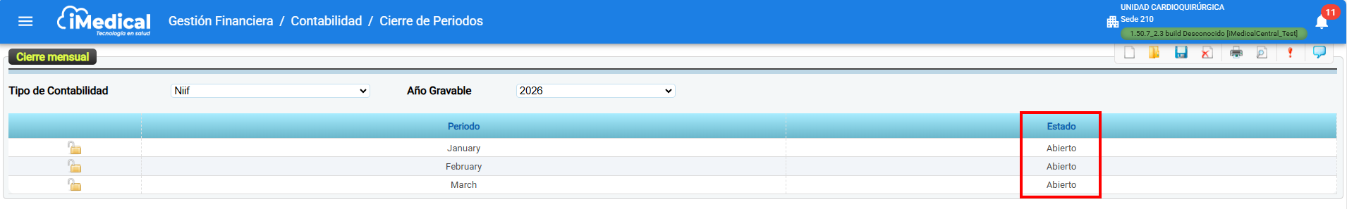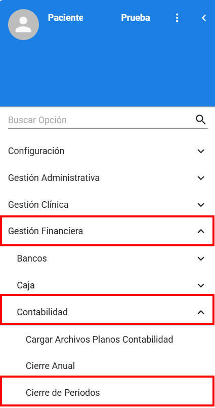 Siguiendo la ruta: Gestión financiera > Contabilidad > Cierre de periodos