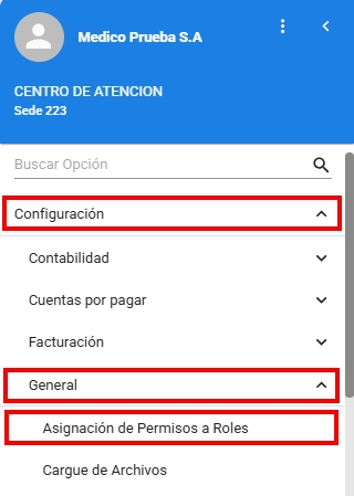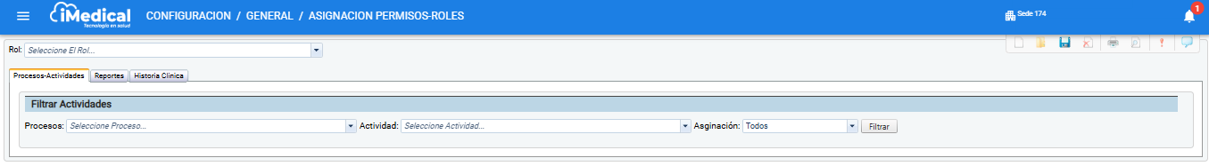 Para poder asignar permisos a las actividades es necesario ingresar a la pantalla Asignación permisos a Roles.