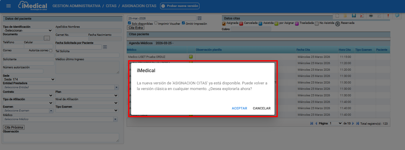 Esta nueva pantalla para gestionar el proceso de asignación de citas cuenta con 3 secciones con una nueva organización en la que resaltan las siguientes: