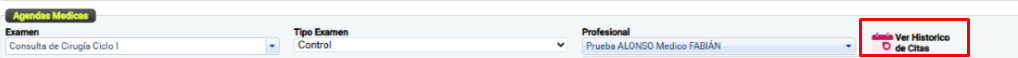 Si el paciente tiene citas asignadas previamente en la sección Agendas Médicas, se mostrará un ícono con el texto "Ver Histórico de Citas".