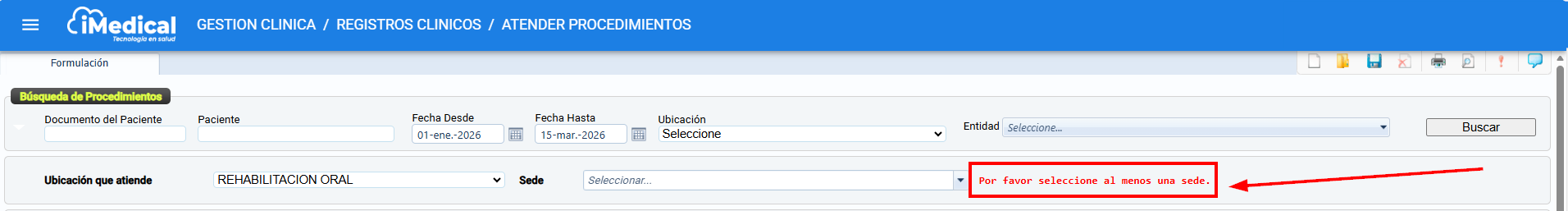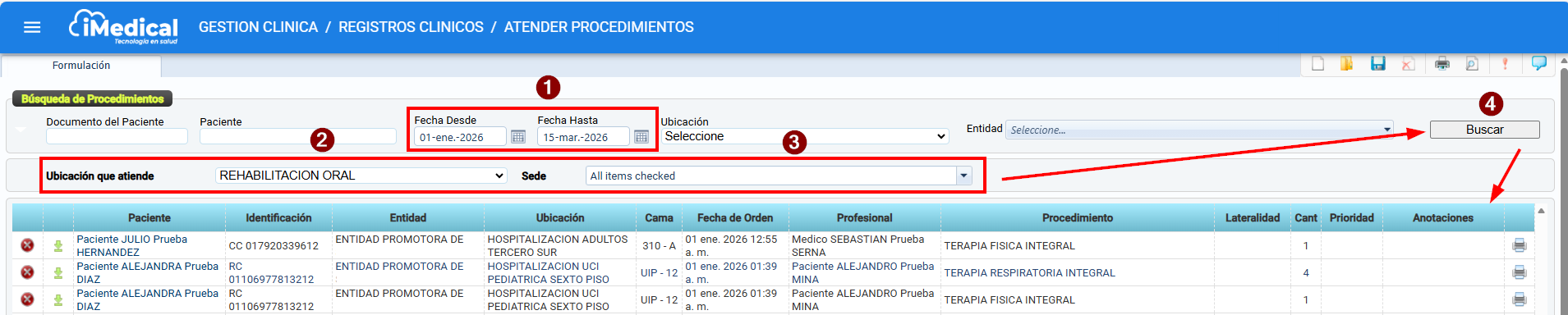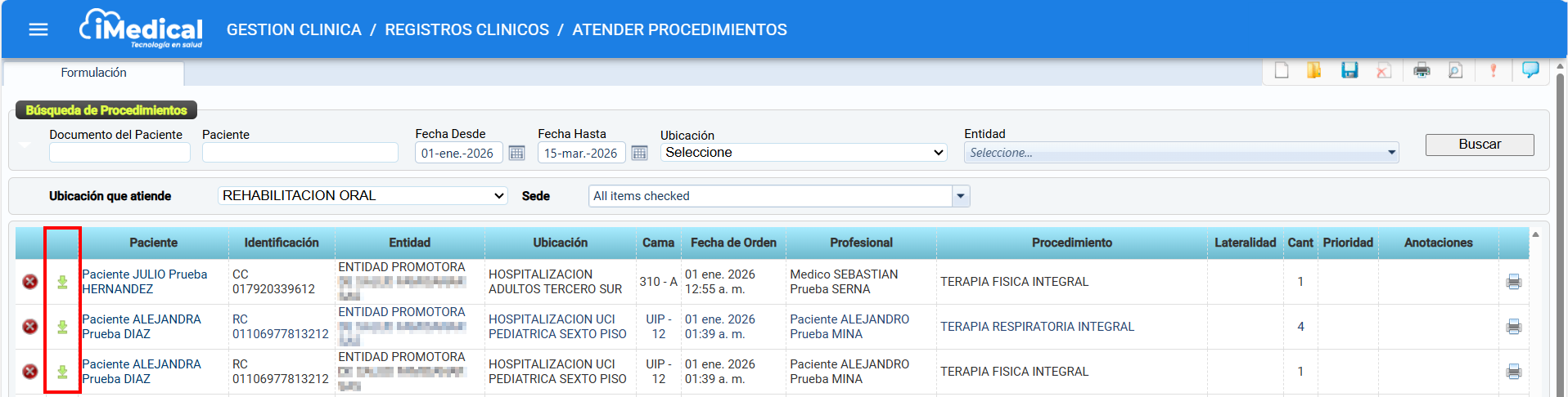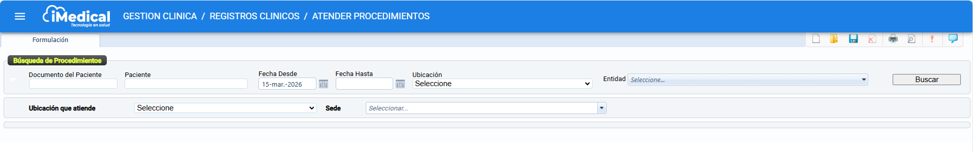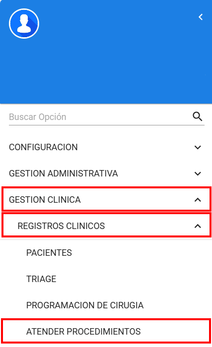 Siguiendo la ruta: Gestión clínica > Registros clínicos > Atender Procedimientos