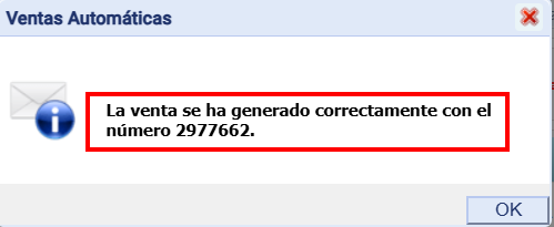 Esto hará que el procedimiento se atienda y se genere una venta automática con su respectivo número.