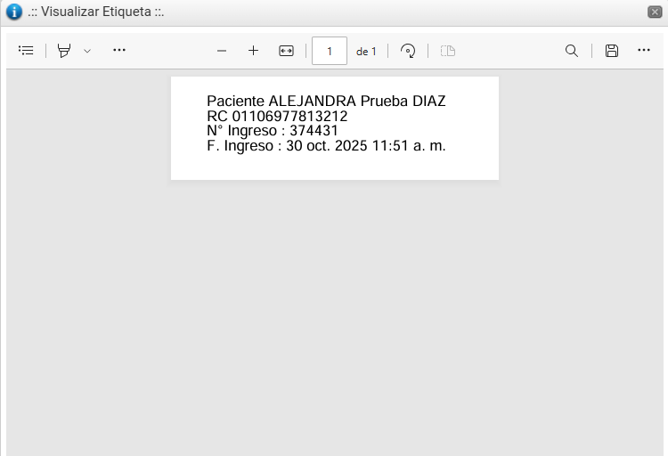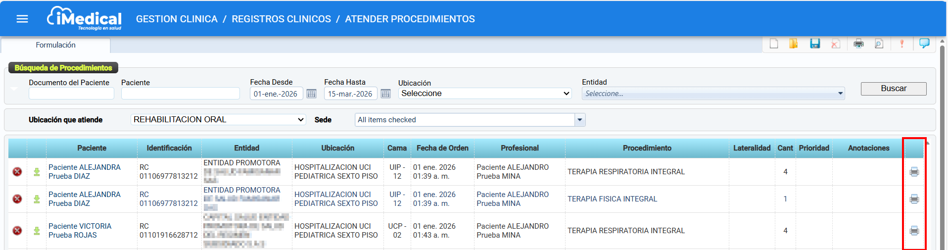 Para imprimir la etiqueta del procedimiento, de clic en el icono de la última columna