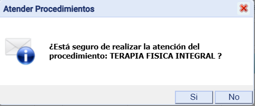 Confirme la atención del procedimiento dando clic en el botón "Si".