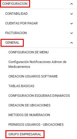 Se debe seguir la ruta: Configuración/general/grupo empresarial