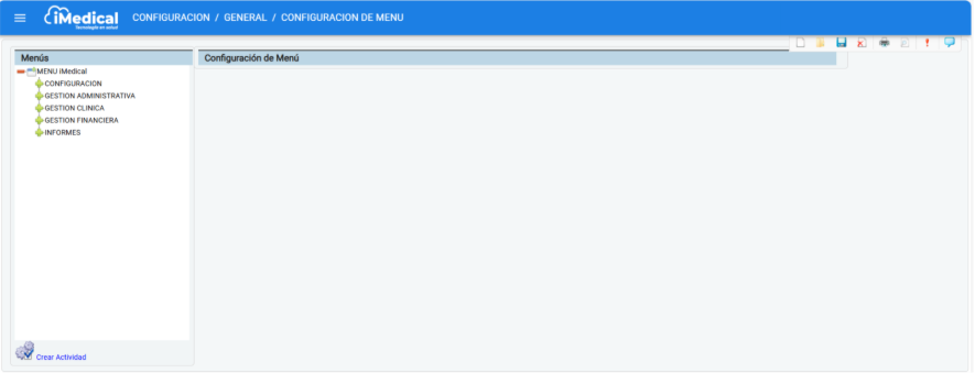 Para configurar los tipos de atención de historia clínica, se deberá ingresar a la siguiente Ruta: Configuración > General > Configuración de menú