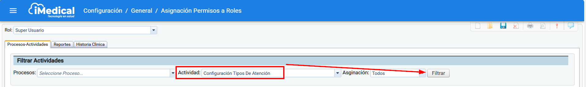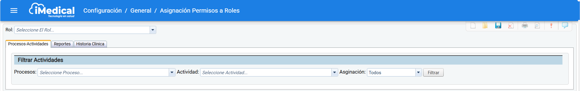 Una vez selección el rol, en la pestaña "Procesos Actividades":