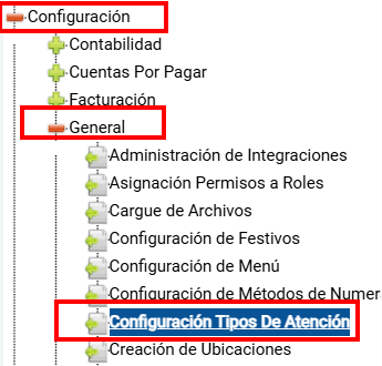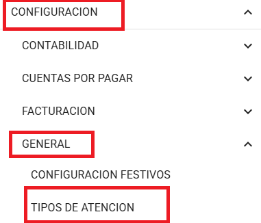 Siguiendo la ruta: Configuración > General > Tipos De Atención
