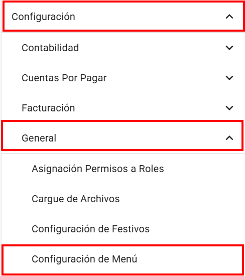 Config menú