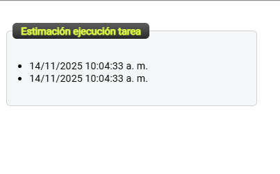 Estas fechas indican los momentos en que la tarea se ejecutará automáticamente.