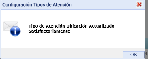 La información presentada en esta sección sirve de apoyo a los usuarios encargados de la gestión de configuraciones institucionales, garantizando que los tipos de atención estén correctamente definidos y actualizados conforme a los servicios habilitados por la institución.