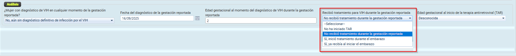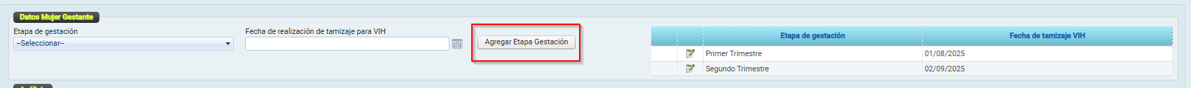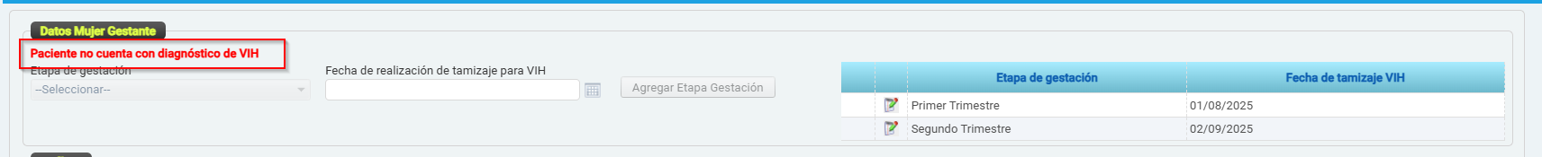 Se habilita solo si: El paciente está en estado de embarazo, y si existe diagnóstico de VIH asociado.