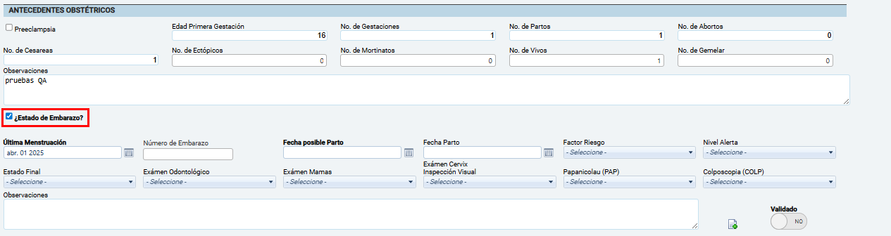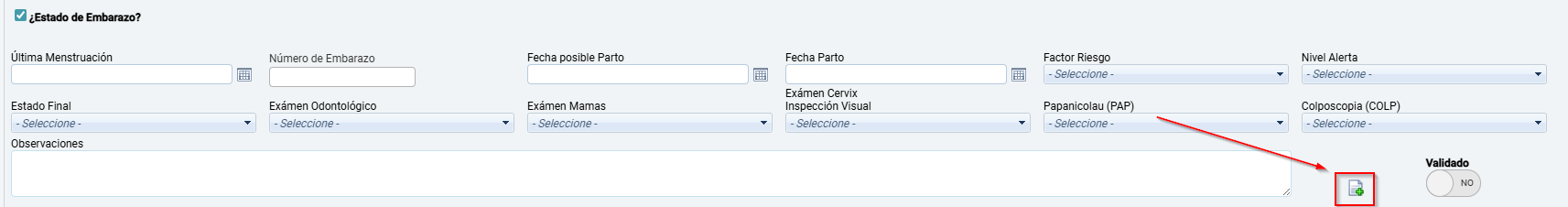 Este formulario se habilita cuando se marca el campo "¿Estado de embarazo?".
