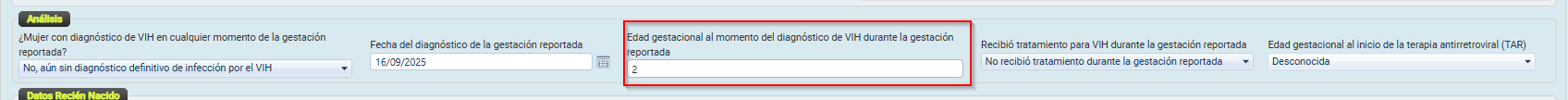 Campo Edad gestacional al momento del diagnóstico de VIH