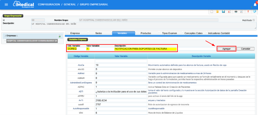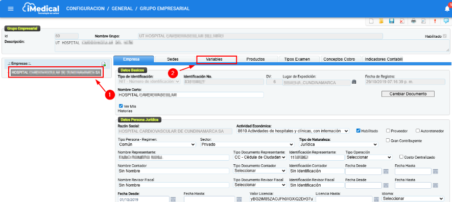 En esta pantalla se debe seleccionar la empresa y luego la pestaña de "Variables".