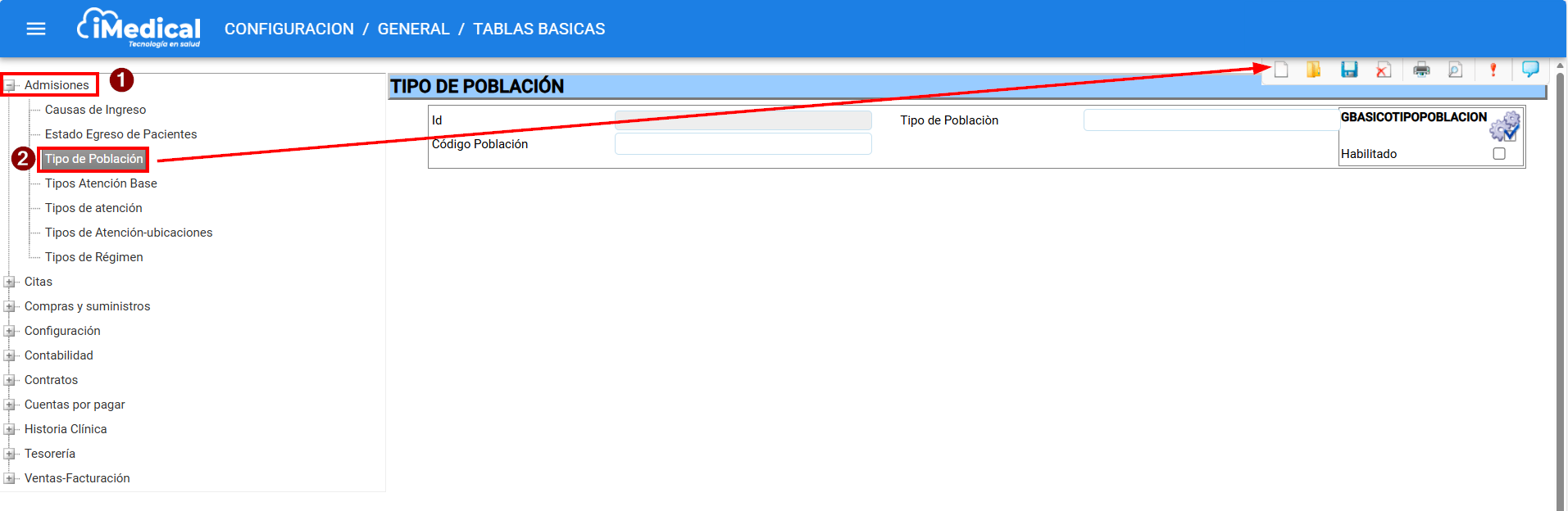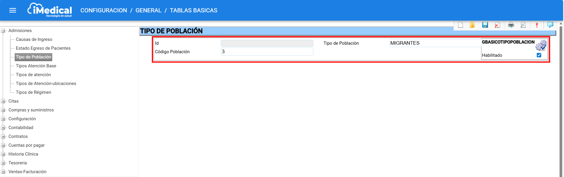 Complete todos los campos de la tabla que se muestra y active la casilla de verificación Habilitado para poder hacer uso del nuevo registro dentro del sistema.
