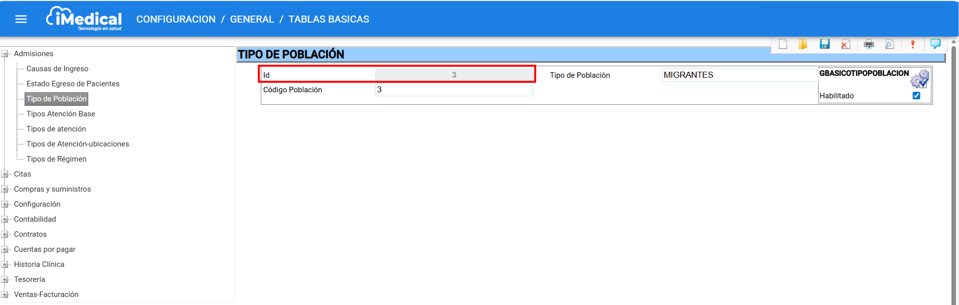 Allí podrá visualizar si la opción está habilitada o no para usarse dentro del sistema. Esto se verifica por medio de la casilla de verificación Habilitado.