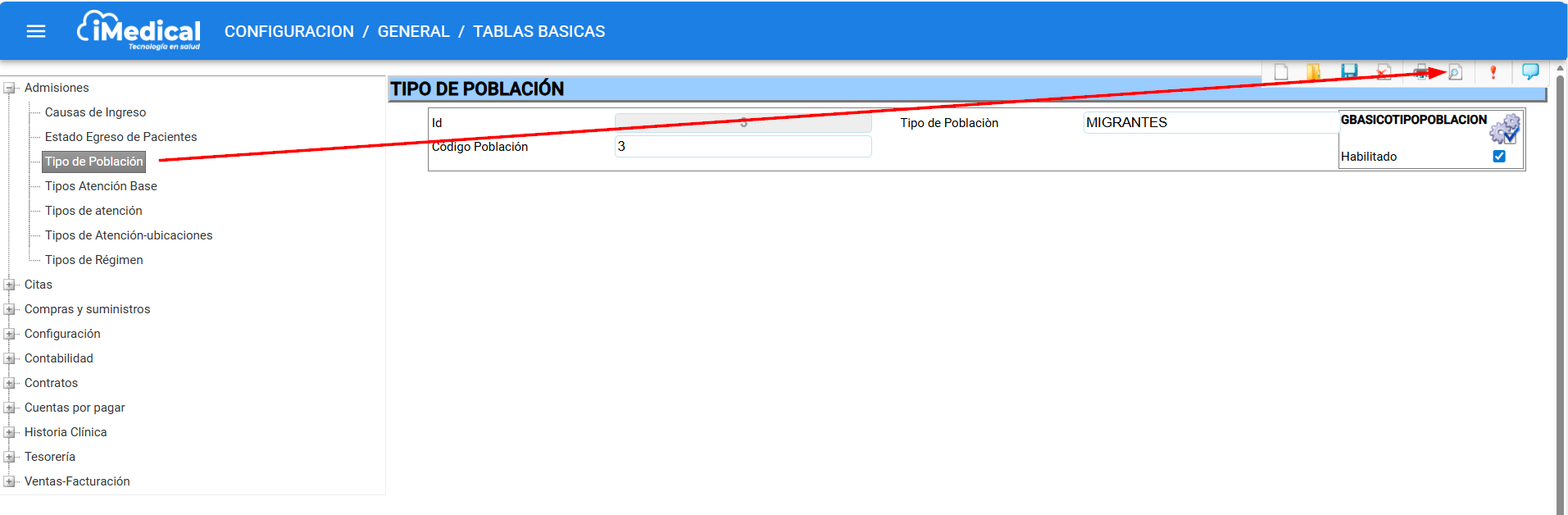 Puede confirmar la creación del registro, dentro de la misma funcionalidad, dando clic en el icono Buscar .