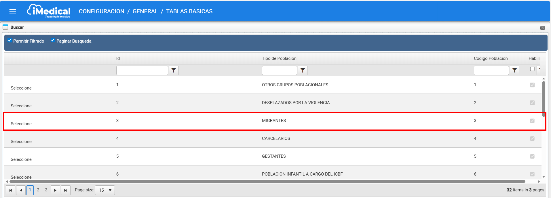 De clic en la opción Seleccione de la primera columna para traer toda la información de la opción a la pantalla principal.