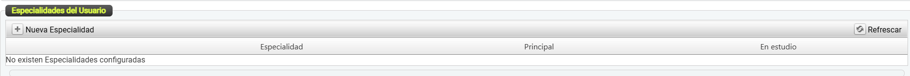Cuando se marca la opción de "persona asistencial", el sistema habilita el panel "ESPECIALIDADES DEL USUARIO", este solo se habilita si desea crear un usuario asistencial, en el cual deberá agregar o indicar la especialidad del usuario, este panel es obligatorio de diligenciar.