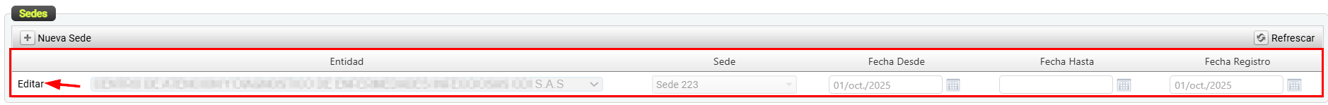 Posteriormente puede visualizar que se agregaron cada una de las sedes, si desea realizar un cambio haga clic en editar y realiza los ajustes pertinentes.