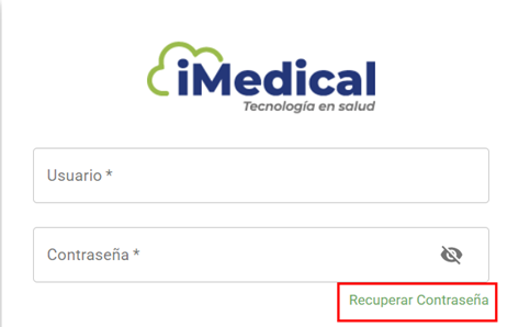 Una vez completo el proceso, ya en la pantalla de acceso, de clic en el botón "Recuperar Contraseña"