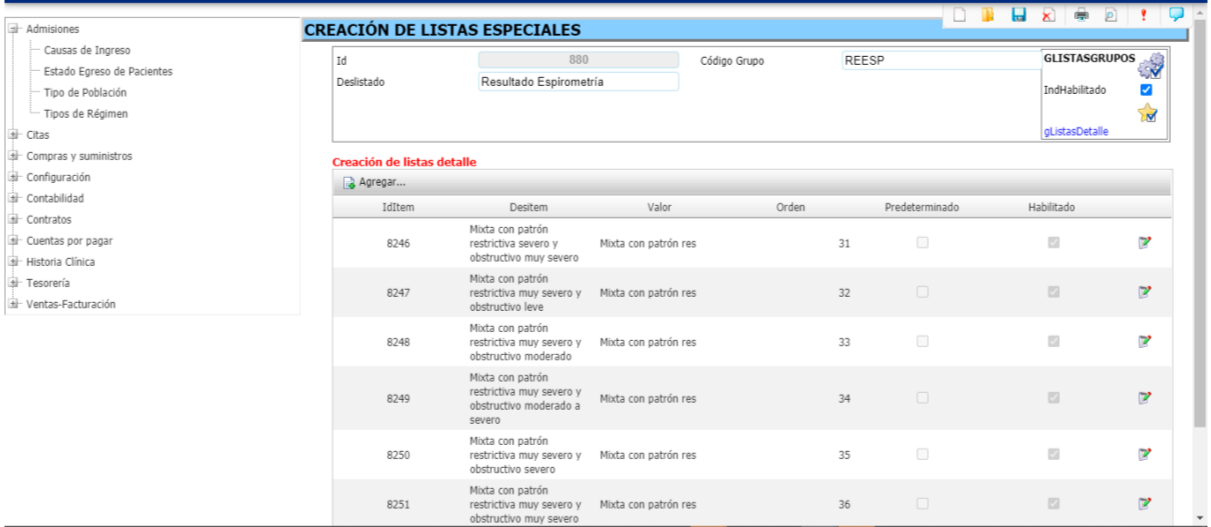 Ubicarse sobre la carpeta Historia clínica y seguidamente en la opción creación de listas especiales.