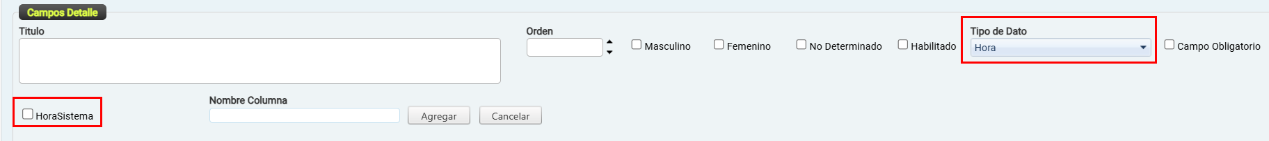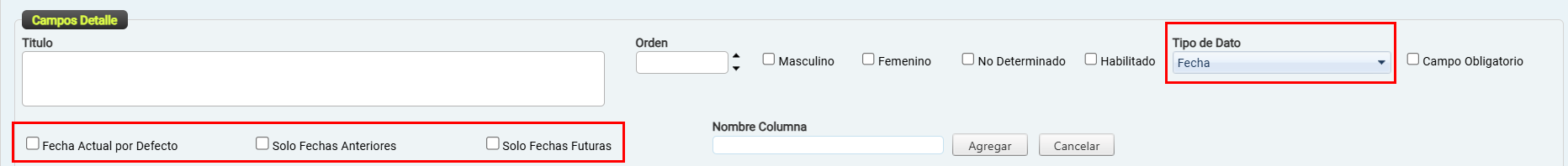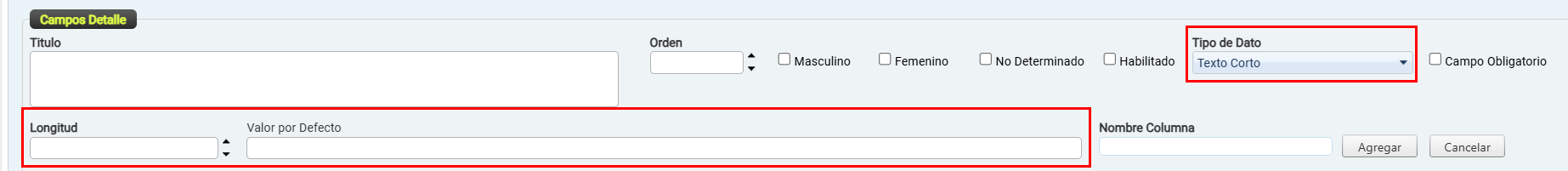 Tenga en cuenta que, algunos tipos de dato traen la opción de "Campo Obligatorio". Active la casilla de verificación para que ese campo que está creando sea de diligenciamiento obligatorio.