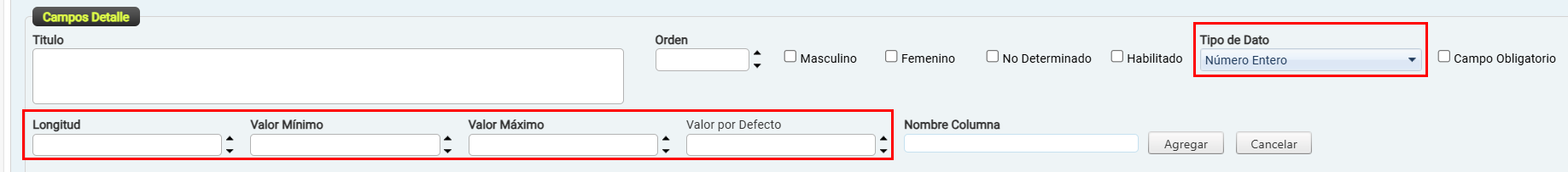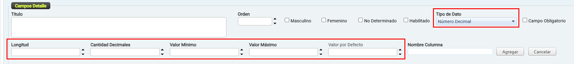 Una vez completos los campos, active las casillas de verificación: "Habilitado, Masculino, Femenino y No Determinado"
