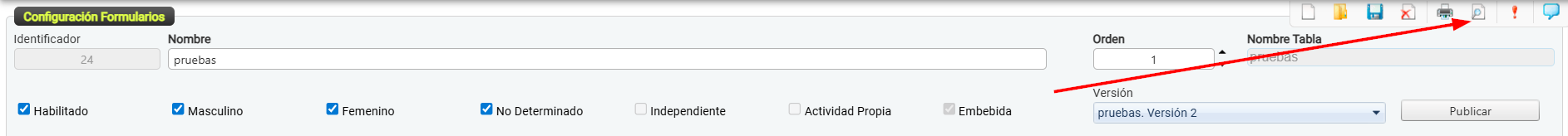 Hecho el cambio, de clic en el icono de Guardar y despues en "Publicar". Es muy importante que siempre después de realizar algún cambio publique la nueva versión, o si no el formulario no se guardara en el sistema ni en la actividad asociada.
