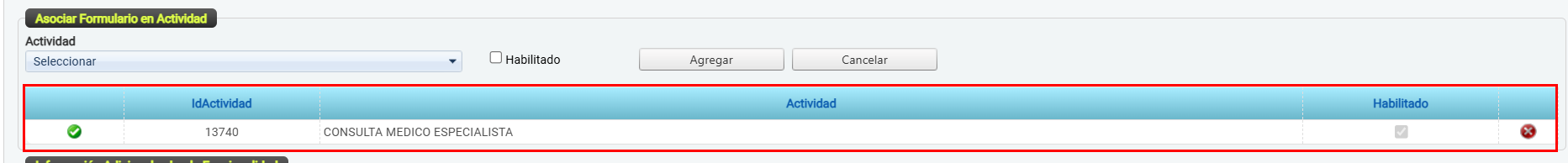 Hecho esto, la actividad aparecerá asociada para el formulario: