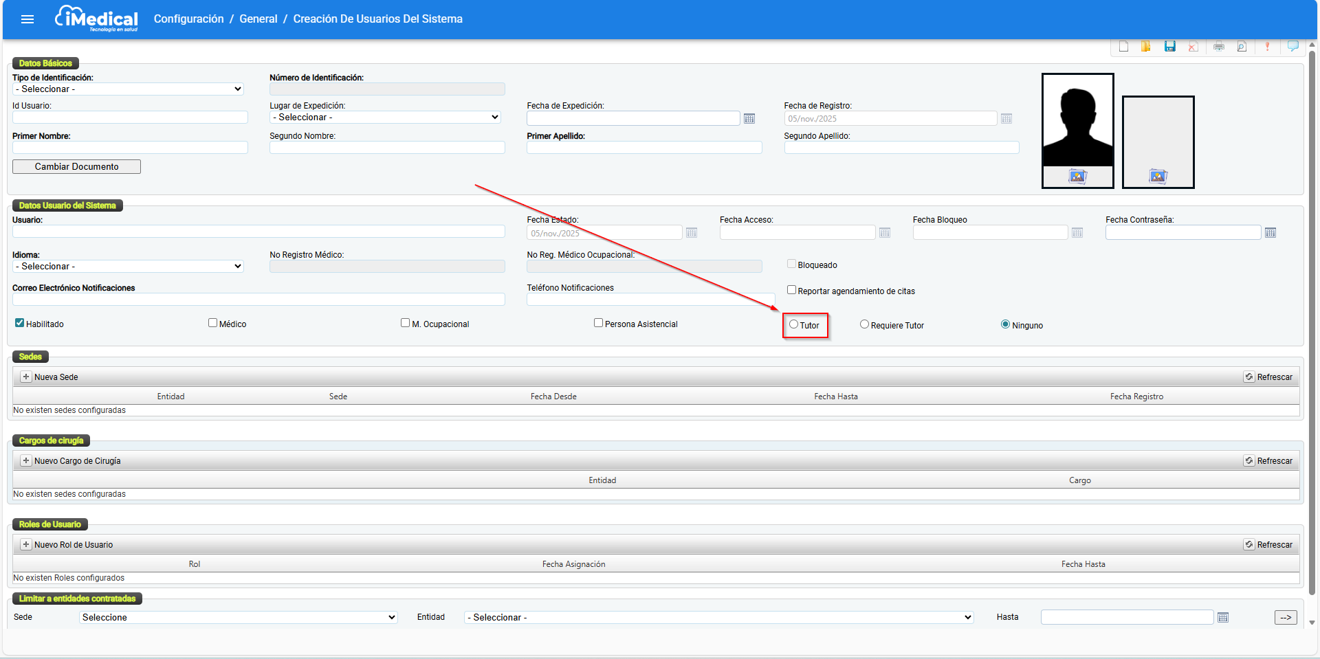 Usuario Tutor: debe tener marcado el indicador Tutor.