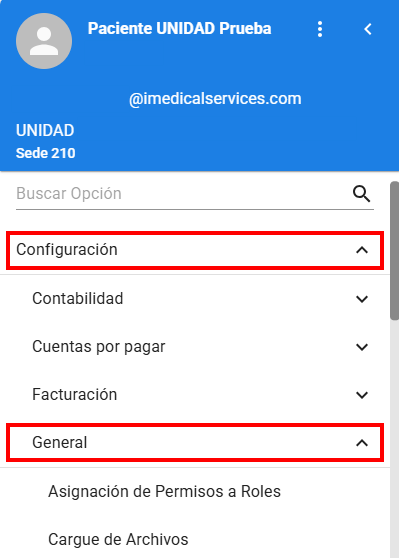 Ruta: Configuración < General < Asignación permisos a roles