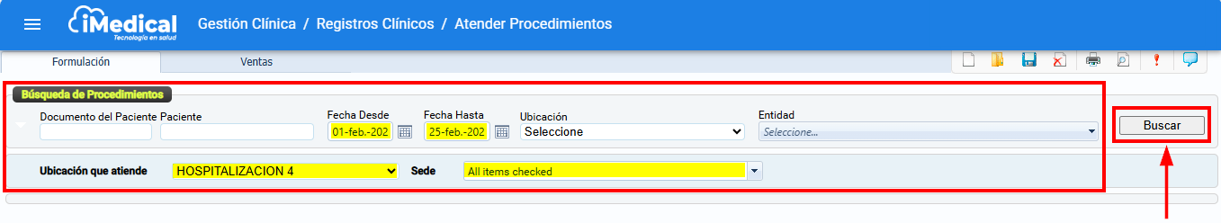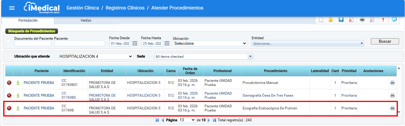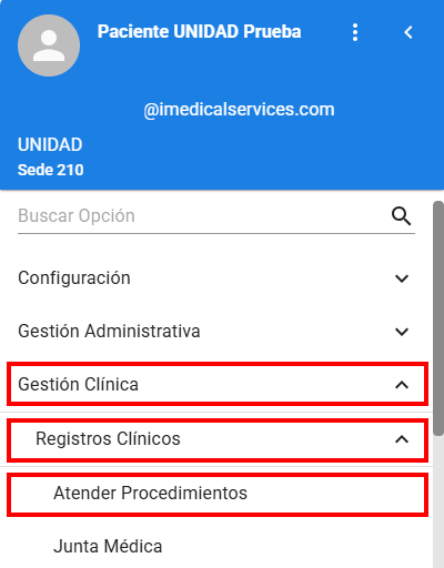 Ruta: Gestión clínica / Registros clínicos / Atender procedimientos