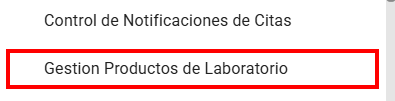 Siguiendo la Ruta: Configuración > General > Gestión Producto de Laboratorio