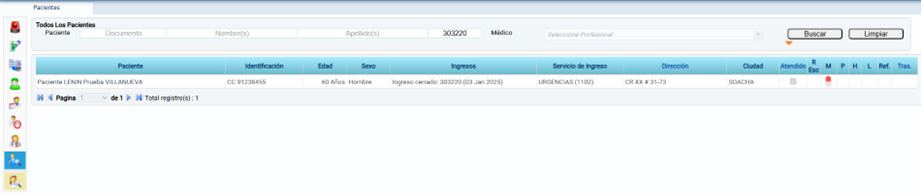 - Seleccionar al paciente desde los resultados para continuar con la gestión o impresión de registros.