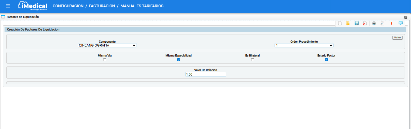 El presente manual ha sido elaborado con el propósito de orientar a los usuarios en la configuración y gestión de los Factores de Liquidación dentro del sistema iMedical. Esta funcionalidad responde a la necesidad de establecer reglas claras para el cálculo de valores cuando un paciente es sometido a múltiples procedimientos quirúrgicos en un mismo evento clínico, asegurando que la liquidación se realice conforme a los lineamientos definidos en los manuales tarifarios vigentes.