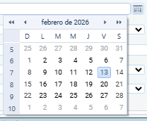 Su selección se realiza mediante un calendario emergente, en el cual el usuario puede navegar por mes y año, y elegir un único día específico. No admite rangos ni múltiples fechas.