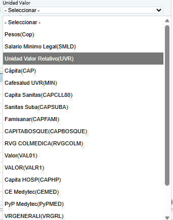 Se utiliza, por ejemplo, para derechos de sala, anestesia o procedimientos quirúrgicos cuyo valor depende de la cantidad de UVR, la especialidad, o el tipo de servicio.