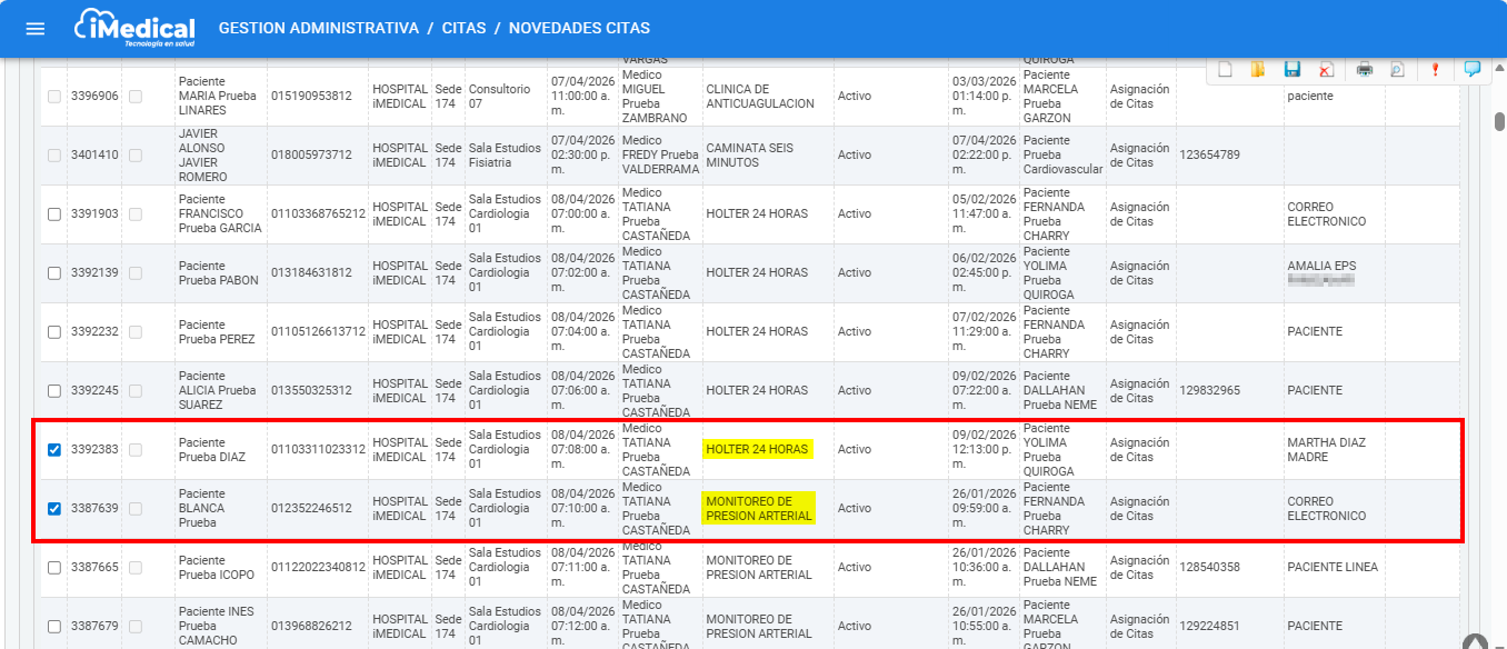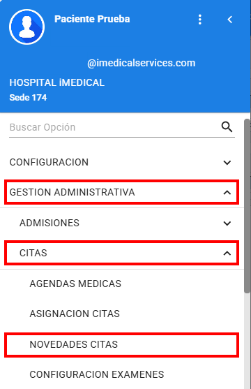 Seguir la ruta: Gestión Administrativa > Citas > Novedades Citas