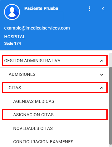Seguir la Ruta: Gestión Administrativa > Citas > Asignación Citas