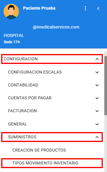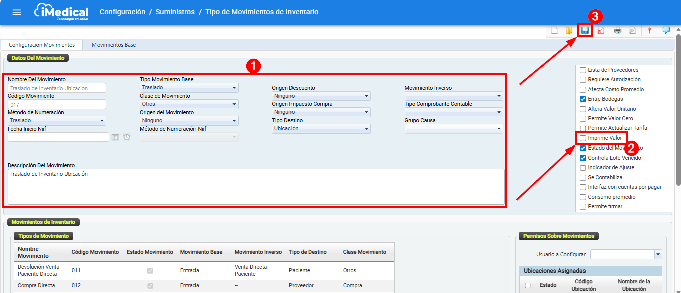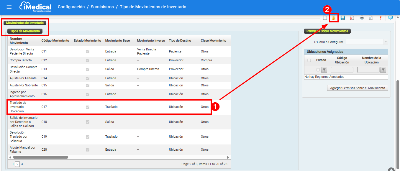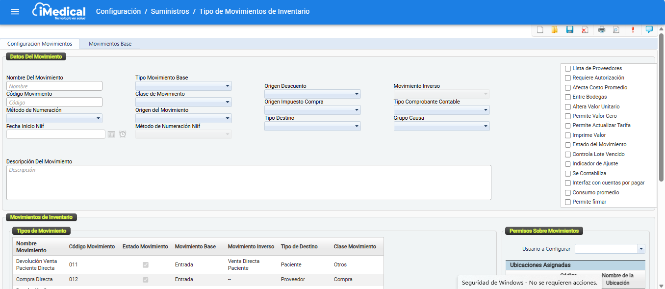 Ingresar a la Ruta Configuración > Suministros > Tipos Movimiento Inventario