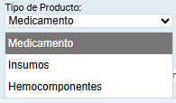 - Tipo de Producto: Lista desplegable que permite seleccionar la categoría del producto que se va a registrar, por ejemplo: insumos, medicamentos u otros tipos configurados en el sistema.