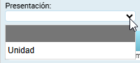 - Presentación: Lista desplegable que indica la forma en que se presenta el producto, por ejemplo: unidad, caja, frasco u otra presentación definida.