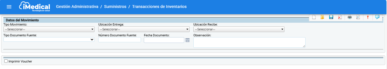 Ingresar a la ruta: Gestión Administrativa > Suministros > Transacciones de Inventarios