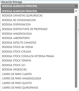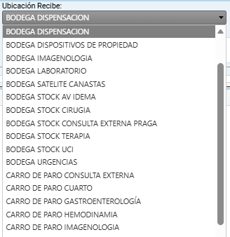 - Ubicación Recibe: Selección de la ubicación que recibirá el producto.