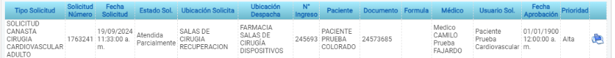- Estado Solicitud: Lista desplegable que permite filtrar las solicitudes según su estado. (Atendida parcialmente, Solicitada)