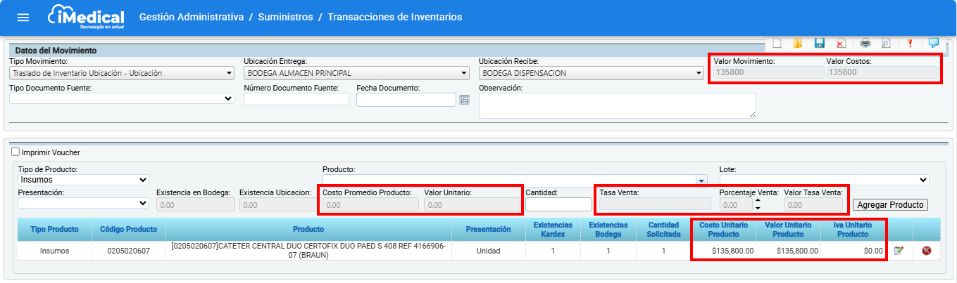 Se cargarán los datos del movimiento, luego se debe des seleccionar el indicador "Imprime Valor" y se da clic en "Guardar"